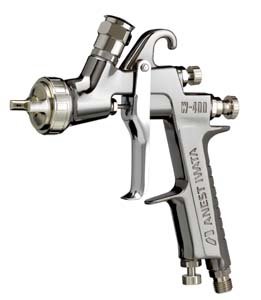 W400LV 1.3 Spray Gun with Regulator Spray patterns up to 12" , Stainless Steel Paint Passage, Fixed double action triggar, Replaceable TeflonTM Needle Packing, Pre-Set Needle Adjustment, Air Pressure Adjustment, Fan Pattern Adjustment, Catridge-Style Air Valve Set, Round Pattern Air Cap and Fan Pattern Air Cap.
