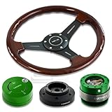 NRG-SRK-101H+200GN+101GN+015RBK, NRG Innovations 13" 330mm Deep Dish Style Wood Grain Black Spokes Racing Steering Wheel Combo with 6 Hole Short Hub Adapter with Gen 2.0 Green Quick Release with Green Lock Hub Kit SRK-101H